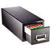 Drawer Card Cabinet, Holds 1,500 3 x 5 Cards, 6.5 x 16 x 5.25, Steel, Black