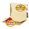 End Tab Pressboard Classification Folders with SafeSHIELD Coated Fasteners, 2 Dividers, Letter Size, Red, 10/Box