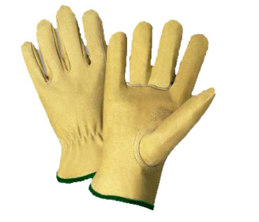 Radnor unlined grain pigskin drivers glove is extremely breathable and resists moisture to remain pliable. Features straight thumb, shirred elastic back and slip-on cuff with color-coded hem for size identification.