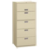 600 Series Five-Drawer Lateral File, 36w x 18d x 64.25h, Putty
