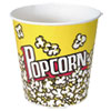 Paper Popcorn Bucket, Popcorn Design, 85 oz, Yellow/Red, 15/Pack, 10 Packs/Carton