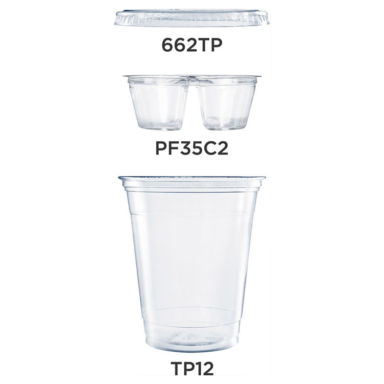 Clear Pet Cups With Two Compartment Insert, 12 Oz, Clear, 500 Sets/carton