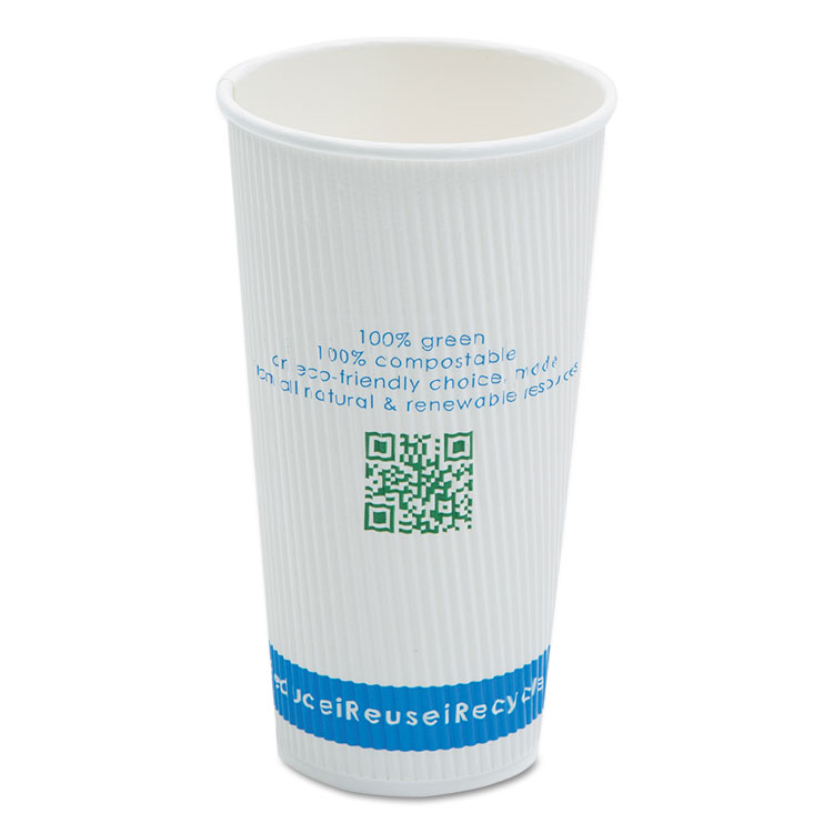 Compostable Insulated Ripple-Grip Hot Cups, 20 Oz, White, 500/carton