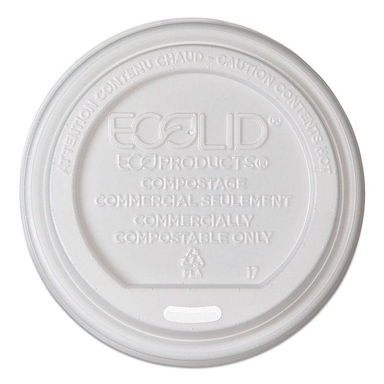 Ecolid Renewable/compostable Hot Cup Lid, Pla, Fits 10 Oz To 20 Oz Hot Cups, 50/pack, 16 Packs/carton