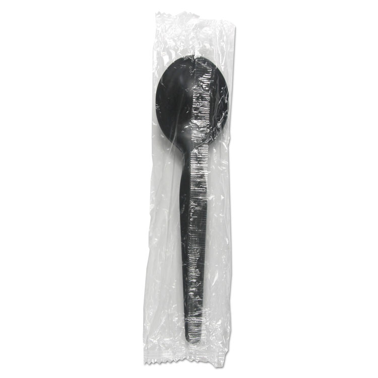 Heavyweight Wrapped Polystyrene Cutlery, Soup Spoon, Black, 1,000/carton