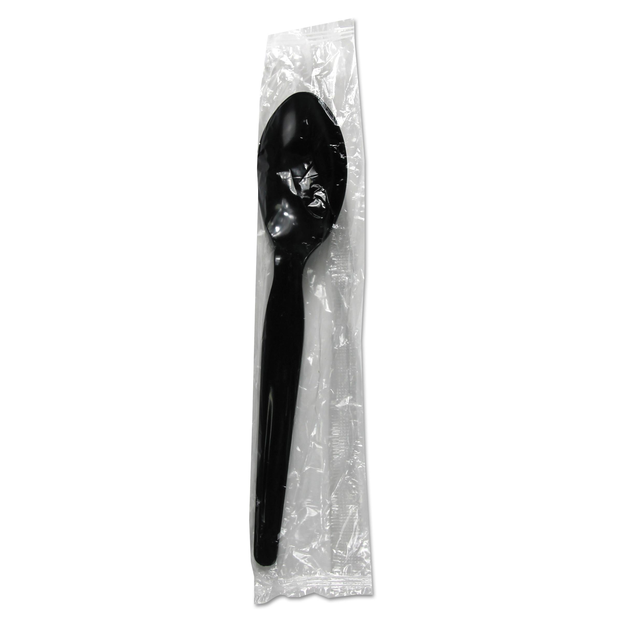 Heavyweight Wrapped Polystyrene Cutlery, Teaspoon, Black, 1,000/carton