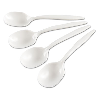 Medium-Weight Cutlery, 6.25″ Soup Spoon, White, Plastic, Wrapped, 1,000/carton