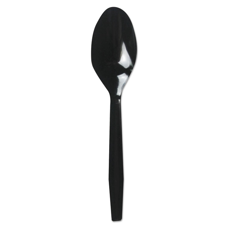 Mediumweight Polystyrene Cutlery, Teaspoon, Black, 1000/carton