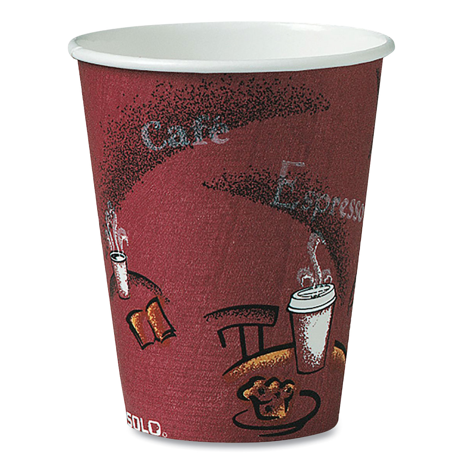 Solo Paper Hot Drink Cups In Bistro Design, 8 Oz, Maroon, 50/bag, 20 Bags/carton