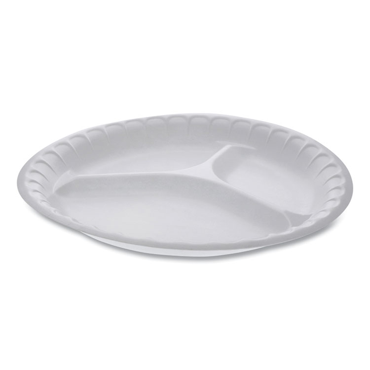 Unlaminated Foam Dinnerware, 3-Compartment Plate, 10.25″ Dia, White, 540/carton