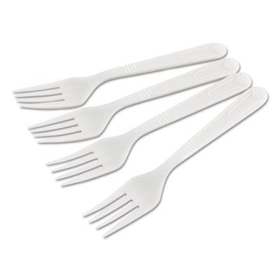 Wrapped Cutlery, Forks, Heavyweight, Polypropylene, White, 1,000/Carton