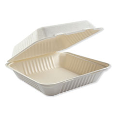 Bagasse Food Containers, Hinged-Lid, 1-Compartment 9 X 9 X 3.19, White, 100/sleeve, 2 Sleeves/carton