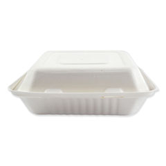 Bagasse Food Containers, Hinged-Lid, 3-Compartment 9 X 9 X 3.19, White, 100/sleeve, 2 Sleeves/carton