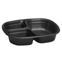 Bakery Trays, 3-Compartment, 6.63 x 1.63 x 8.44, Black, 125/Bag, 2 Bags/Carton