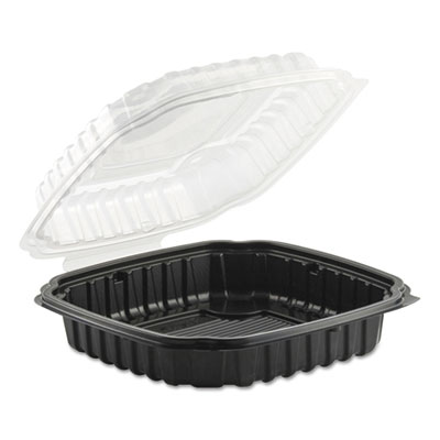 Culinary Basics Microwavable Container, 46.5 Oz, 10.5 X 9.5 X 2.5, Clear/black, 100/carton