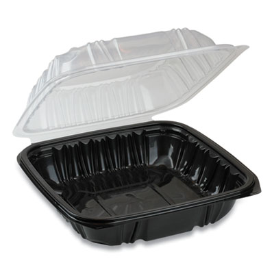 Earthchoice Dual Color Hinged-Lid Takeout Container, 1-Compartment, 28 Oz, 7.5 X 7.5 X 3, Black/clear, 150/carton