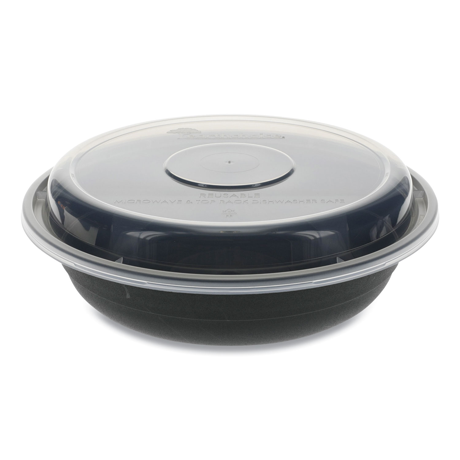 Earthchoice Versa2go Microwaveable Containers, 22 Oz, 6.8 X 6.8 X 1.8, Black/clear, 150/carton