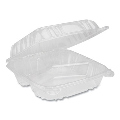 Sensation Smartlock Clear Hinged Lid Containers, 3-Compartment, 8.24 X 8.34 X 3.05, Clear, 200/carton