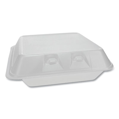 Smartlock Foam Hinged Containers, Large, 3-Compartment, 9 X 9.25 X 3.25, White, 150/carton