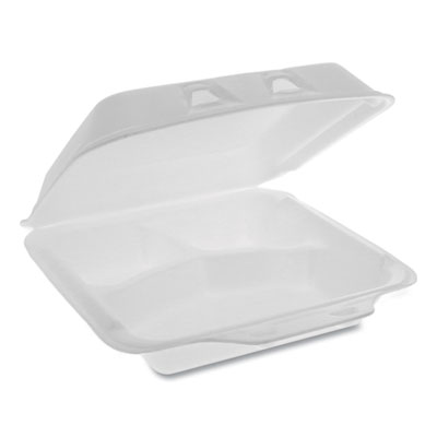 Smartlock Foam Hinged Containers, Small, 3-Compartment, 7.5 X 8 X 2.63, White, 150/carton