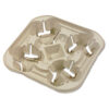 StrongHolder Molded Fiber Cup Tray, 8-22 oz, Four Cups, Beige, 300/Carton