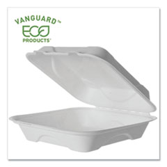 Vanguard Renewable And Compostable Sugarcane Clamshells, 1-Compartment, 9 X 9 X 3, White, 200/carton