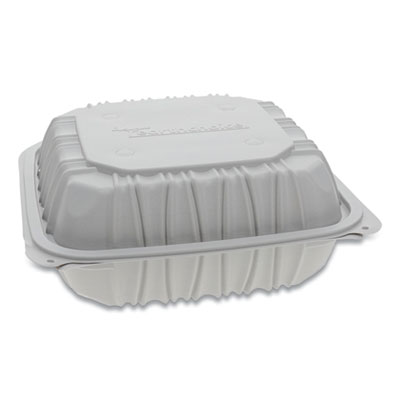 Vented Microwavable Hinged-Lid Takeout Container, 3-Compartment, 8.5 X 8.5 X 3.1, White, 146/carton