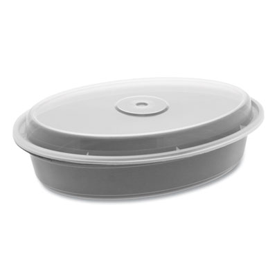Versatainer Containers, Oval, 32 Oz, 9.1 X 6.7 X 1.9, Black/clear, 150/carton