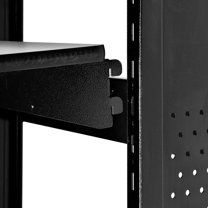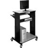 This extra-tall 46″H workstation is designed for standing applications. Top work surface 28-3/4″W x 16″D supports your PC with room for supplies. Keyboard shelf is set at 36″H. Adjustable lower shelf measures 28-1/4″W x 18″D and holds supplies, a mini-tower CPU or printer. Four 1″ swivel casters (2 locking). Sturdy black coated steel frame with 3/4″ light gray laminate surfaces. Easy assembly. Optional 6-outlet power strip (model# 500881) is sold separately.