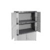 Conveniently store and organize supplies and equipment. Corrosion and dent resistant plastic construction with lockable doors for security.Cabinet is gray and is virtually maintenance free and easy to clean. Features 4 fixed shelves for stability. Fixed shelves have up to 138 lb. capacity. Doors are padlockable for security. Snap together construction assembles in 15 minutes.