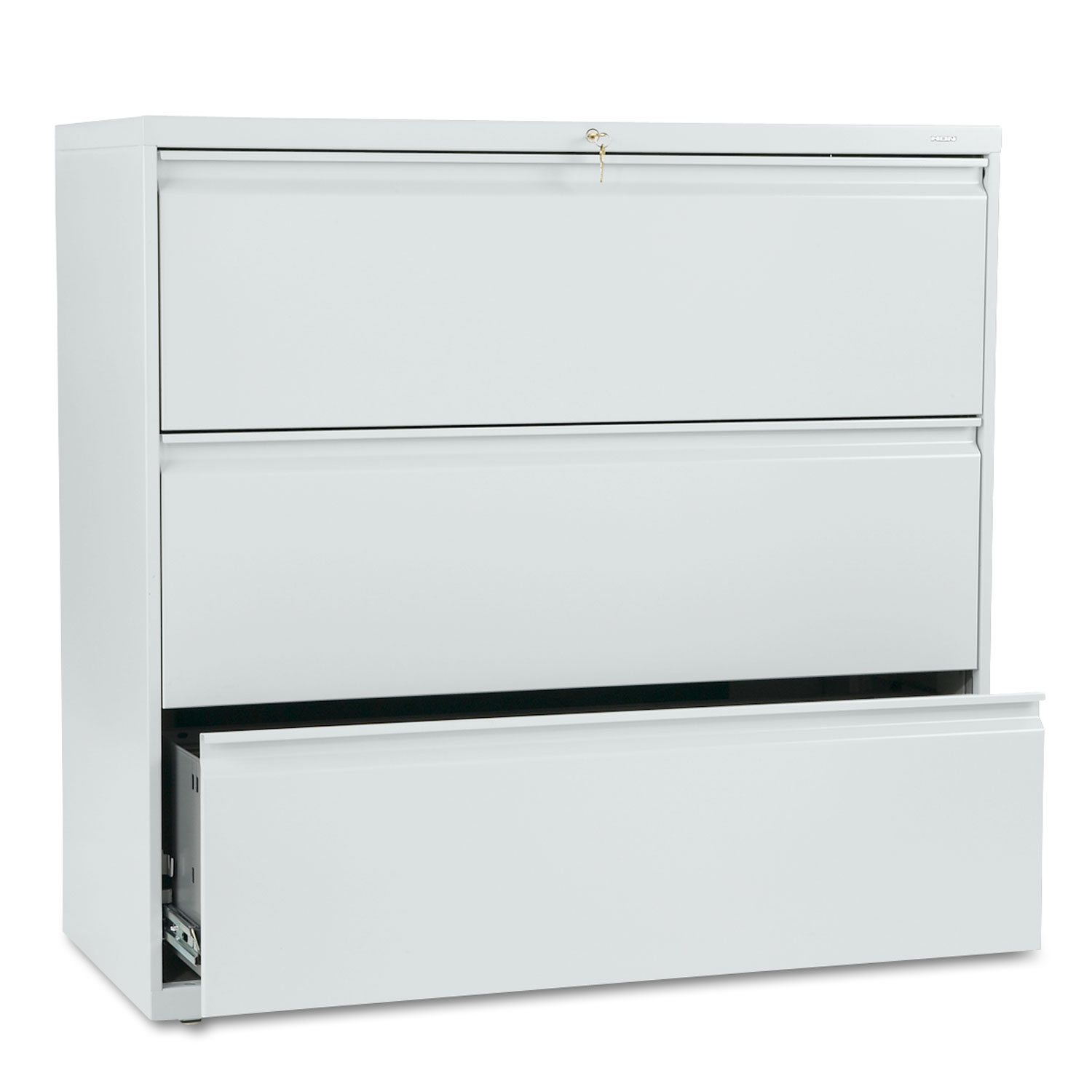 Brigade 800 Series Lateral File, 3 File Drawers, Light Gray, 42″ X 18″ X 39.13″