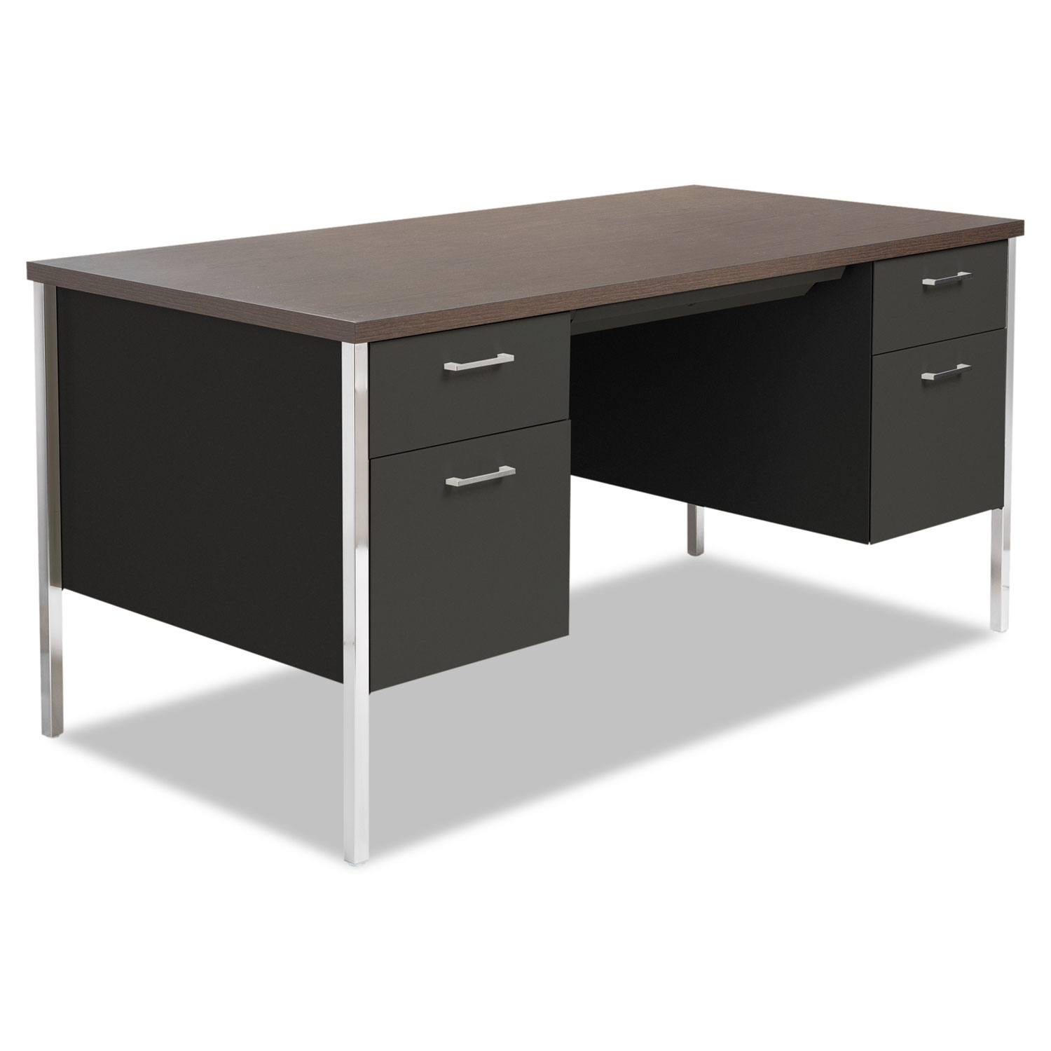 Double Pedestal Steel Desk, 60″ X 30″ X 29.5″, Mocha/black