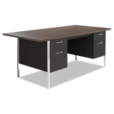Double Pedestal Steel Desk, 72″ X 36″ X 29.5″, Mocha/black