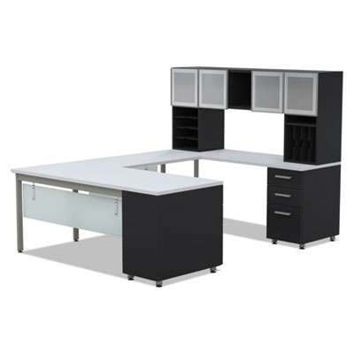 e5 Series Executive U-Workstation, 72″ x 96″ x 62″, White/Raven