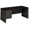 38000 Series Left Pedestal Desk, 66″ x 30″ x 29.5″, Mahogany/Charcoal
