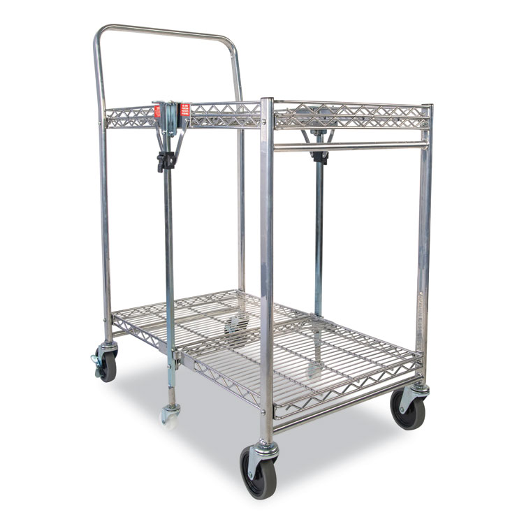 Stowaway Folding Carts, 2 Shelves, 29.63w X 37.25d X 18h, Chrome, 250 Lb Capacity
