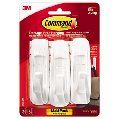 General Purpose Hooks Multi-Pack, Large, 5 Lb Cap, White, 3 Hooks And 6 Strips/pack