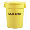 Round Brute Container with “Trash Only” Imprint, Plastic, 33 gal, Yellow