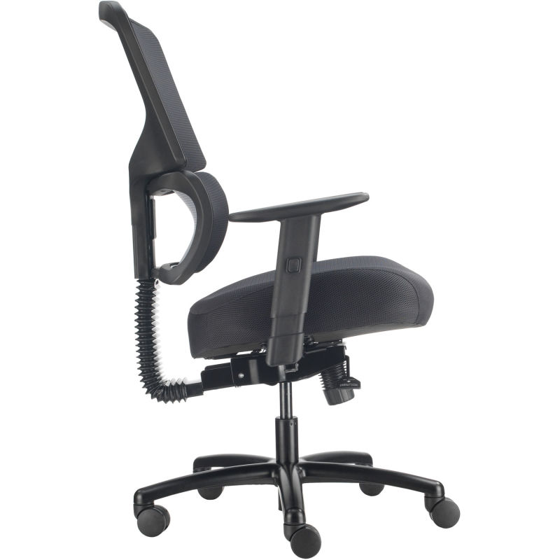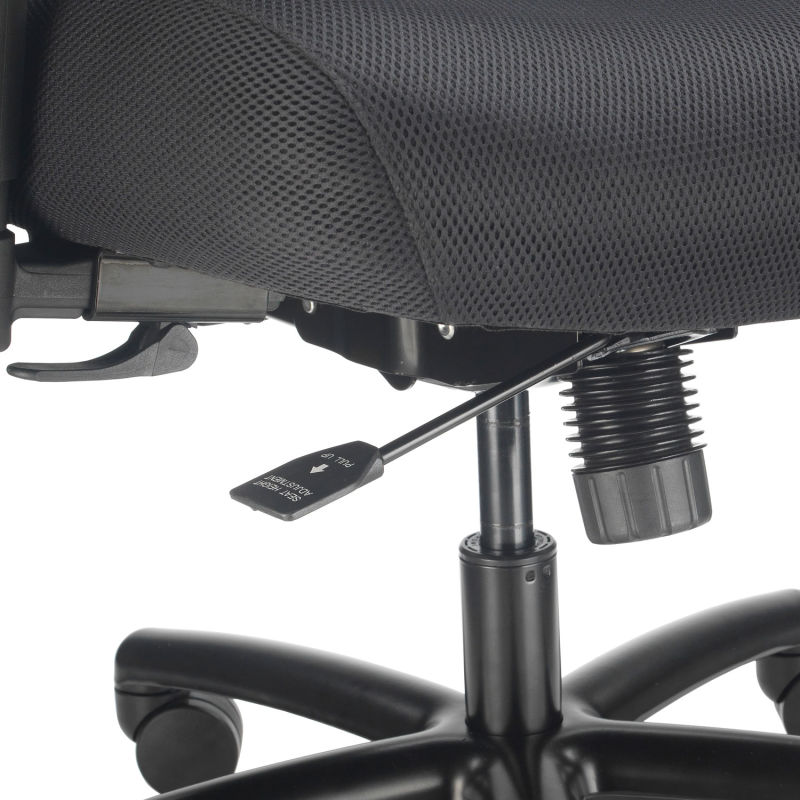 Ideal for long shifts or for multiple user experience, this 24 Hour Chair features numerous ergonomic adjustments to accommodate most body types. Arms are both height and width adjustable and the black mesh fabric seat and back offer breathability as you work. It’s high chair back features built in lumbar support and also adjusts in height with a simple pull and lock system. Built-in seat slider adjusts the seat pan back and forth while you are seated to help various users get maximum back support. Comfortable, plush seat is 4-3/4″ thick for maximum comfort. Synchro Tilt locks in 3 positions to be used in conjunction with a tilt tension control knob. Weight capacity accommodates up to 400 lbs. Brand is Interion’s By Global Industrial.
