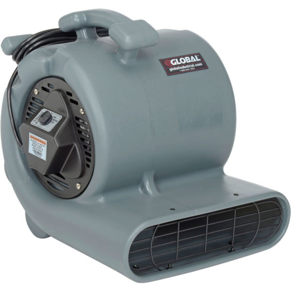 Made using roto-molded housing and fan assembly for quiet operation. 3/4HP motor with 3-speed operation offers efficient drying for floors, walls and ceilings. Floor dryer allows 3 height adjustment positions for optimum drying. Built-in handle for easy lifting. Air blower includes 20’L power cord. 120V/60Hz; 6.6/6.7/6.8 Amps; 1621/1677/1891 RPM. ETL, cETL approved. . Measures 16″W x 18″D x 17″H.