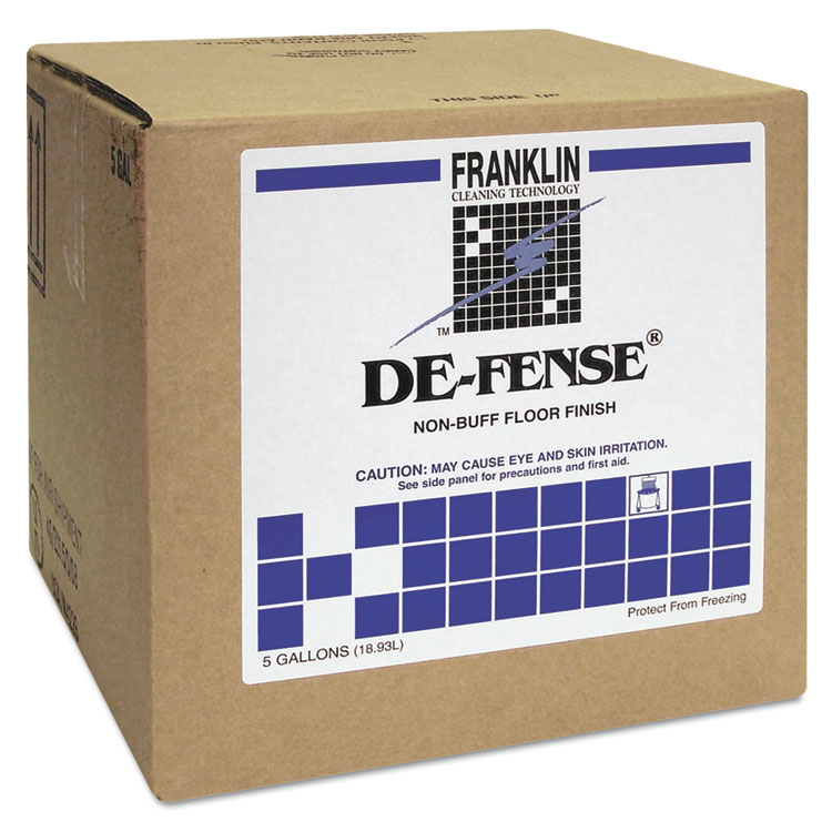 De-Fense Non-Buff Floor Finish, Liquid, 5 Gal Dispenser Box