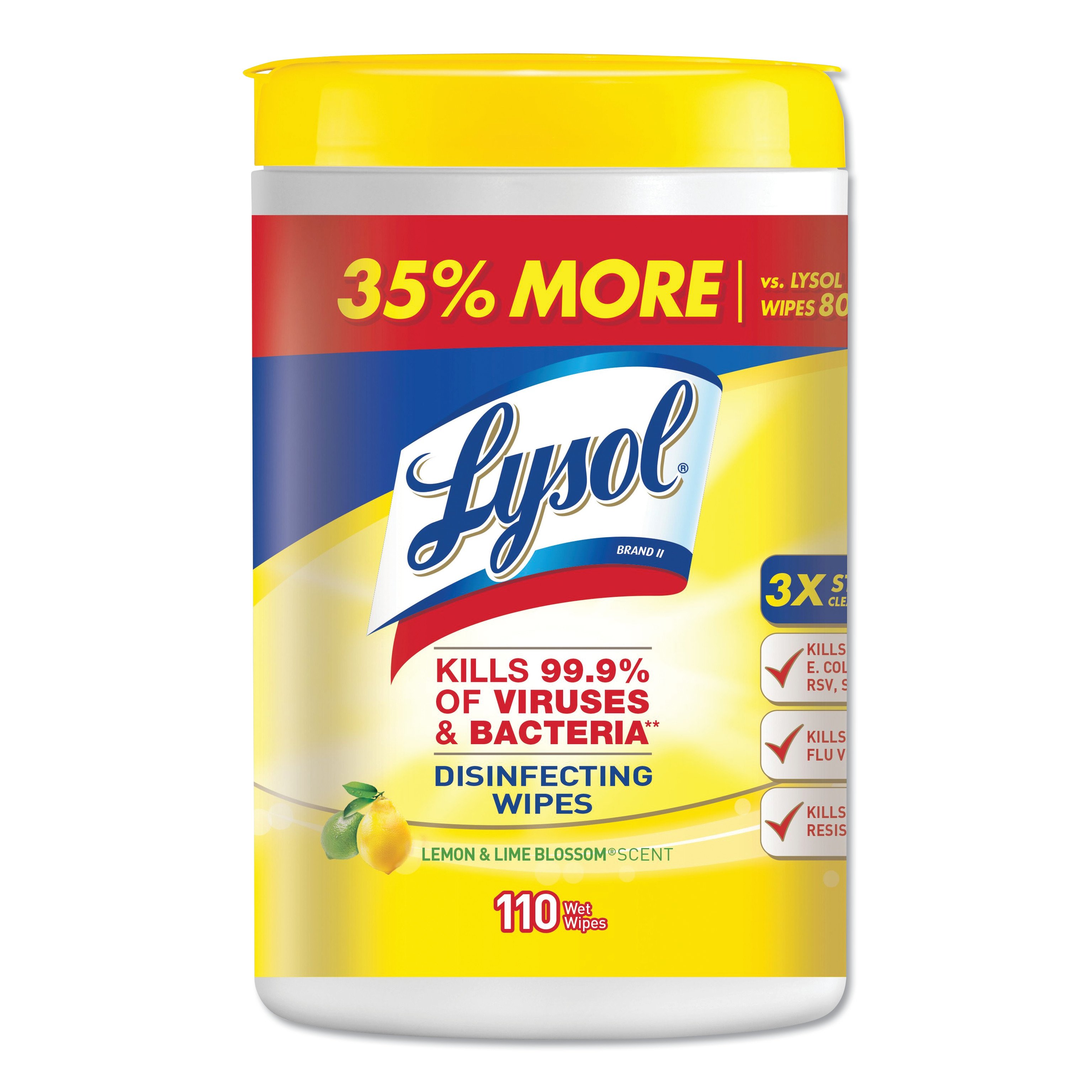 Disinfecting Wipes, 7 X 7.25, Lemon And Lime Blossom, 110 Wipes/canister
