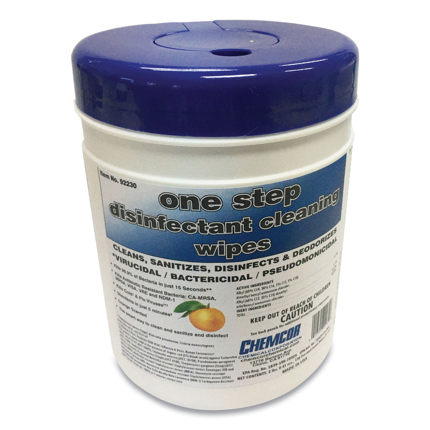 One Step Disinfectant Cleaning Wipes, Orange Scent, 8 X 6, White, 130/canister, 12 Canisters/carton