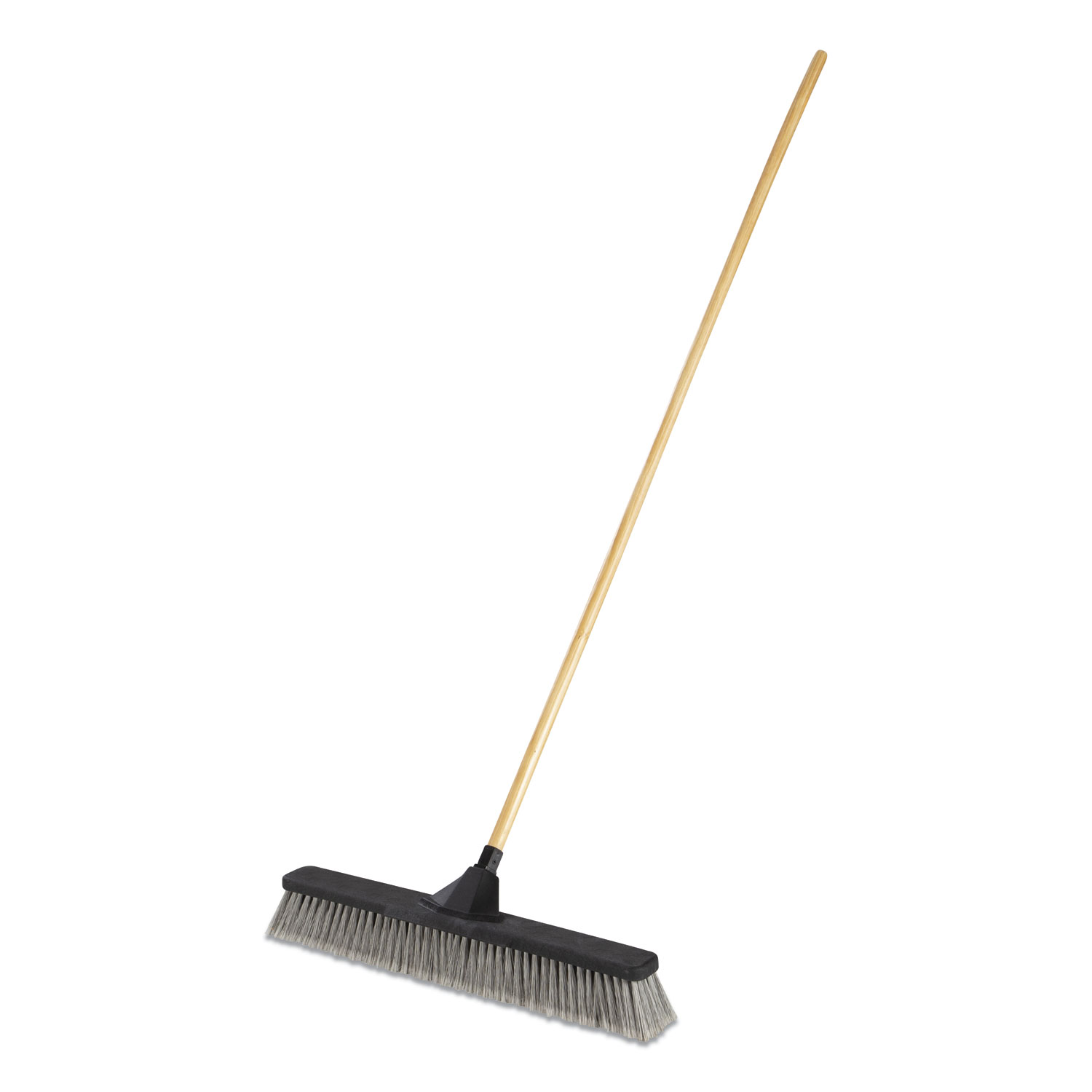 Push Brooms, 24 X 62, Pet Bristles, Fine Debris, Wood Handle, Black