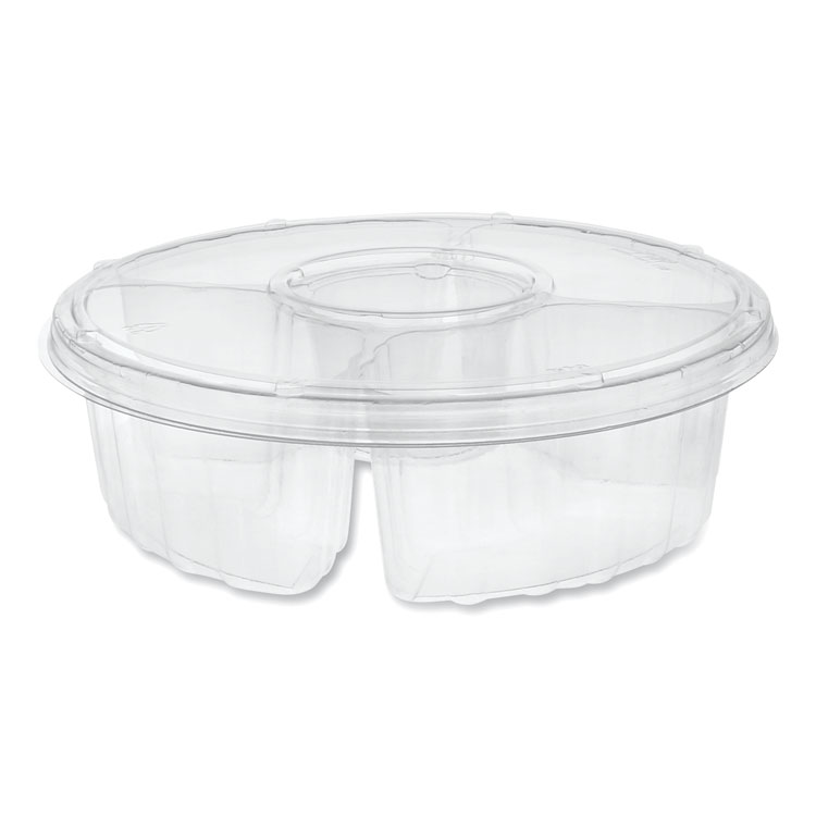 Dip Cup Platter, 4-Compartment, 64 Oz, 10″ Diameter, Clear, 100/carton