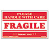 Printed Message Self-Adhesive Shipping Labels, FRAGILE Handle with Care, 3 x 5, Red/Clear, 500/Roll