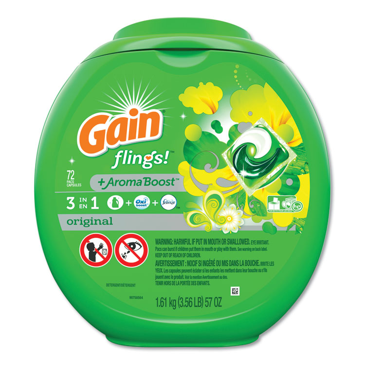 Flings Detergent Pods, Original, 72/container, 4 Container/carton