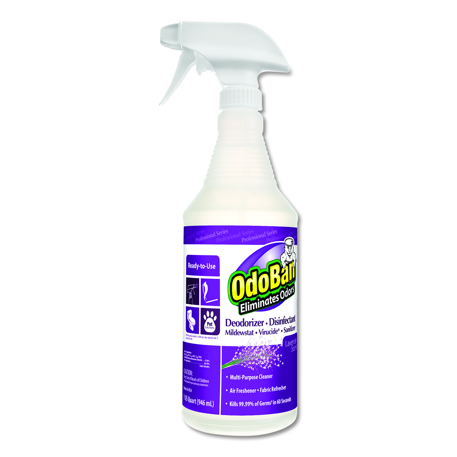 Rtu Odor Eliminator And Disinfectant, Lavender, 32 Oz Spray Bottle, 12/carton