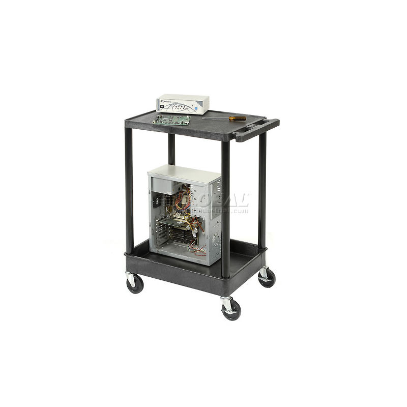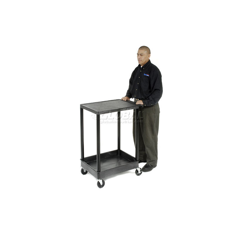 Luxor STC21 Flat Top Shelf 2 Shelf Plastic Utility Cart 24×18 300 Lbs.