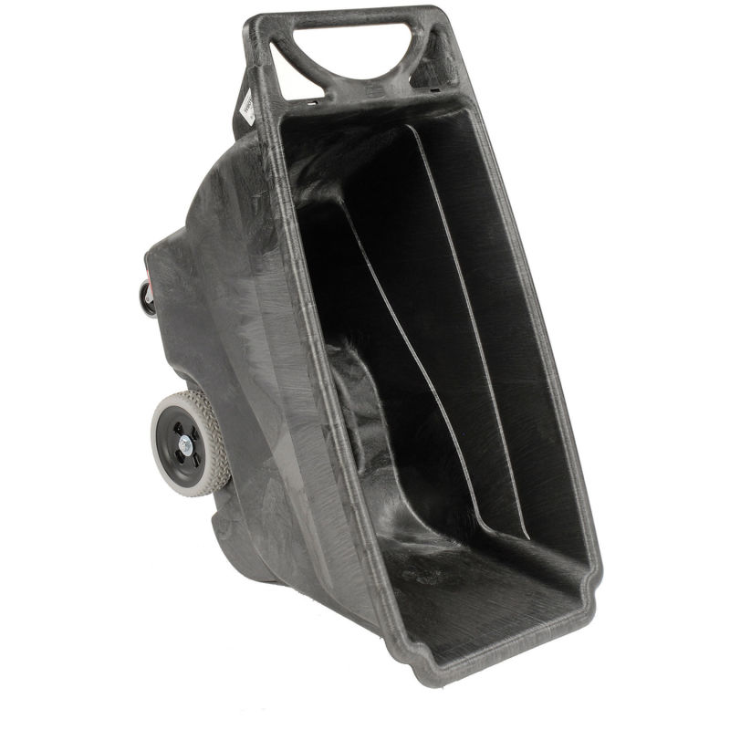 Collect, transport and dump bulk materials effortlessly. Ergonomically designed, with comfortable steer handle and secondary dump handle offering maximum control with minimal effort. Strong structural foam plastic construction has no frame to rust or mar walls. Slim design allows truck to fit through standard doorways. Durable rubber swivel casters and axle-mounted wheels. Nests 3 high for compact storage. Optional Hinged Lid helps control odors and protects cargo. Optional Vinyl Caddy Bag installs easily with snaps to carry cleaning solutions and tools where needed.